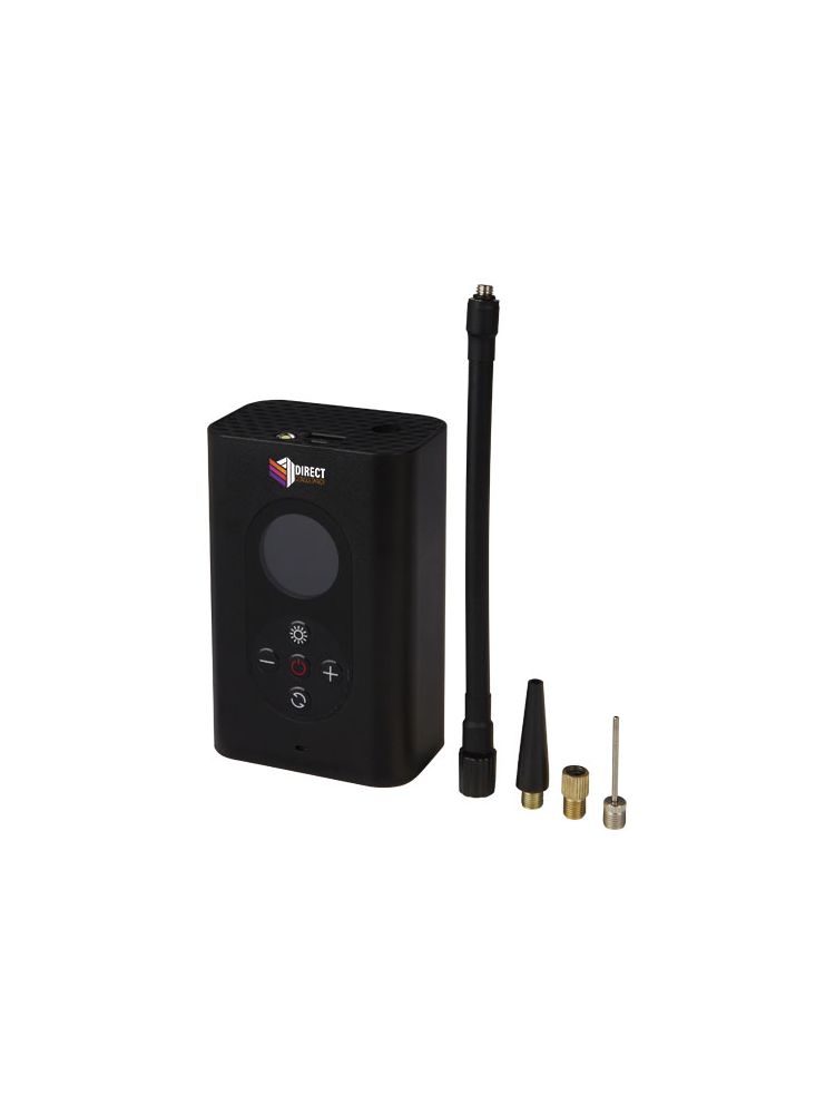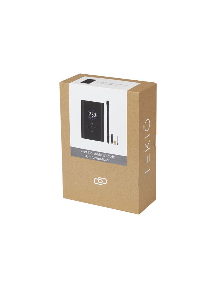 Dzięki przenośnej sprężarce powietrza Pilot możesz pompować opony samochodowe/motocyklowe, piłkę nożną lub balony w podróży. Wbudowany akumulator litowo-polimerowy o pojemności 4000 mAh zapewnia do 35 minut pracy na jednym ładowaniu. Maksymalne ciśnienie pompowania: 150 PSI (990 KPA). Posiada duży ekran LCD i 4 wstępnie ustawione tryby: samochód, balon, motocykl i piłka. Zawiera akcesoria pasujące do różnych przedmiotów. Sprężarka powietrza może być również używana jako awaryjny powerbank z wyjściem 5 V/1 A. Ładowanie sprężarki od 0% do 100% trwa około 3 godzin. Dostarczana w woreczku ułatwiającym transport i przechowywanie. Dostarczana w pudełku Tekiō z wysokiej jakości papieru Kraft z kolorową naklejką.