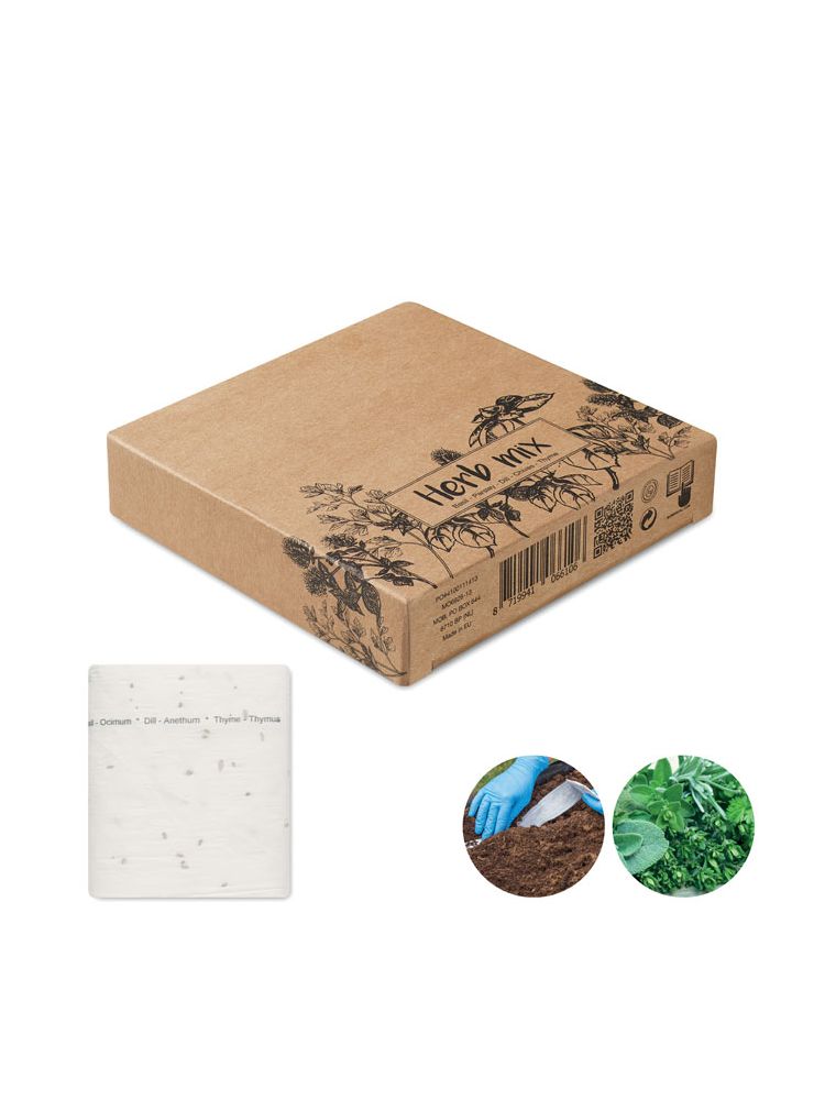 Taśma z nasionami ziół. Nasiona bazylii, pietruszki, koperku, szczypiorku i tymianku. Wyprodukowano w UE.