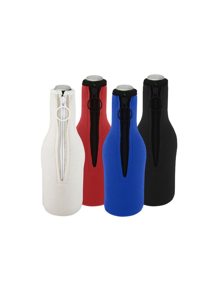 Uchwyt na butelkę z neoprenu z recyklingu, który łatwo się składa i mieści się w kieszeni lub torebce. Posiada dodatkową izolację utrzymującą napój chłodny przez dłuższy czas, jednocześnie sprawiając, że butelka jest wygodna do trzymania.