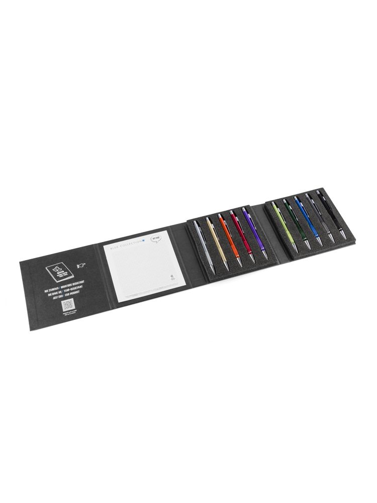 Nowoczesny i elegancki wzornik mieszczący 10 najpopularniejszych metalowych długopisów z oferty Blue Collection.