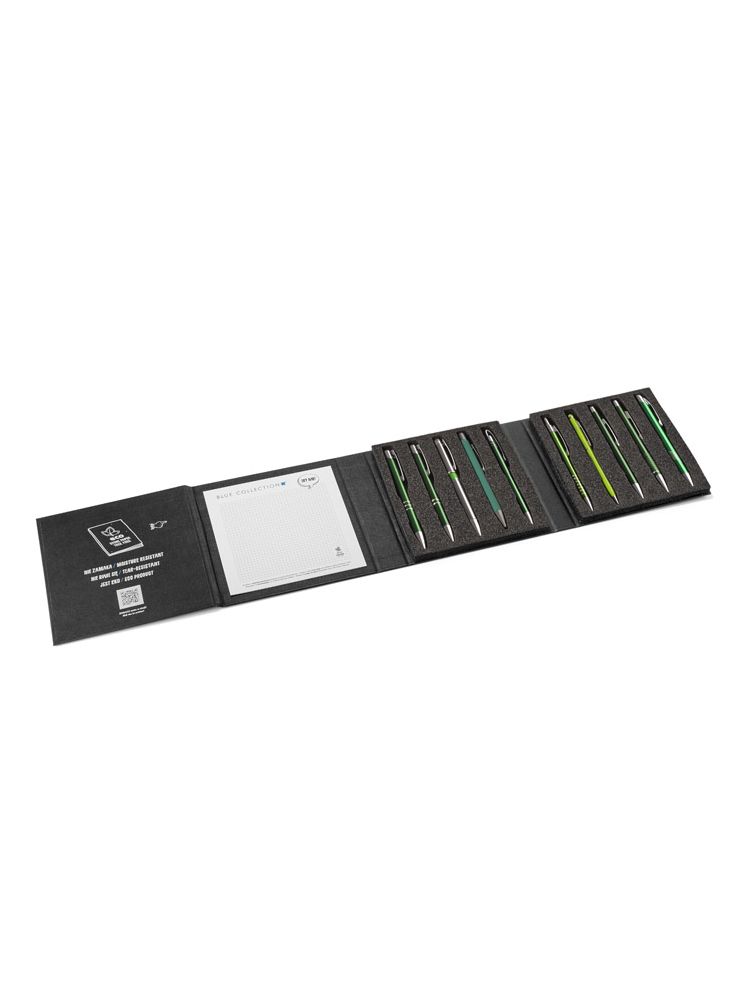 Będzie idealnym materiałem do prezentacji, dzięki umieszczonemu wewnątrz notesowi z papieru kamiennego da możliwość jednoczesnego przetestowania długopisów.