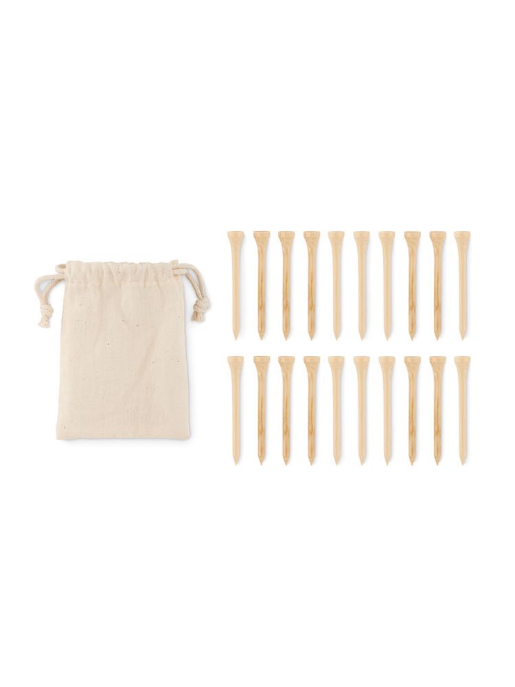 Tee golfowe z bambusa prezentowane w torebce ze sznurkiem z bawełny organicznej. Bambus jest produktem naturalnym, dlatego mogą wystąpić nieznaczne różnice w kolorze, wzorze i rozmiarze.