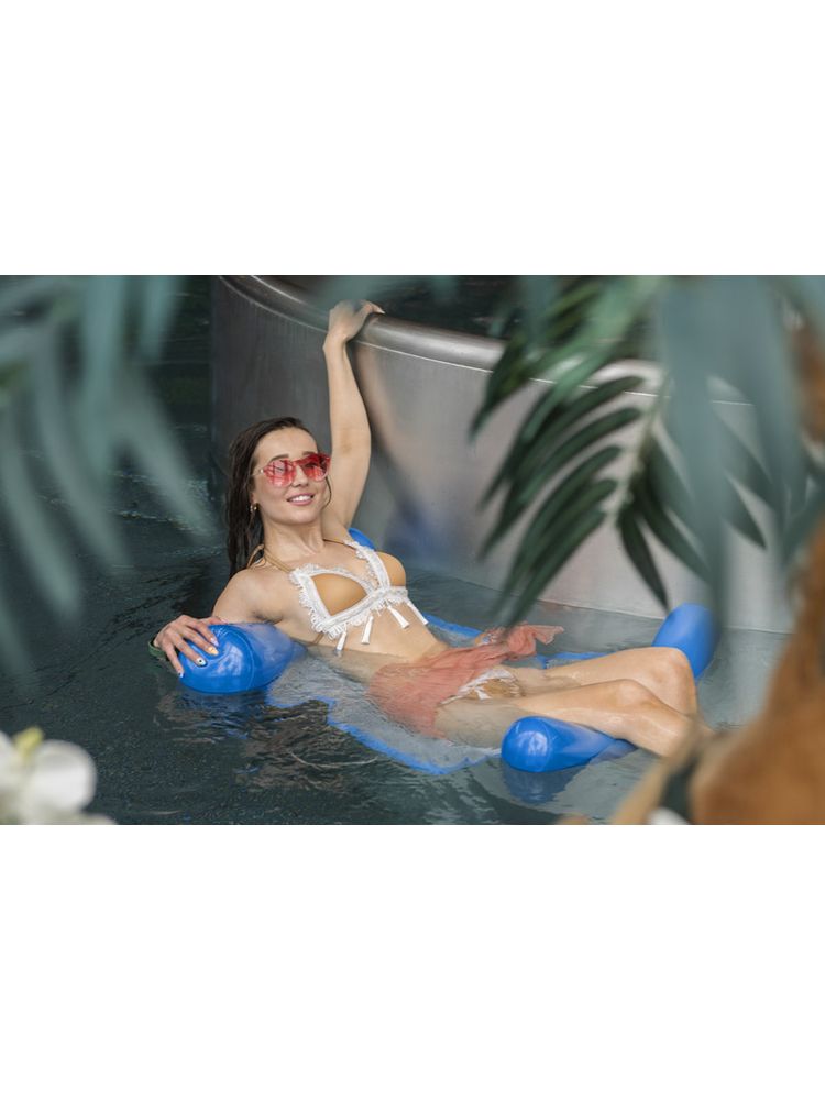 Wygodny w użytkowaniu hamak do pływania posiada ergonomiczny kształt, który zapewnia wysoki komfort podczas korzystania z kąpieli wodnych. Dzięki niemu każda kąpiel będzie relaksem i wypoczynkiem. Hamak po złożeniu zajmuje niewiele miejsca – jest poręczny w transporcie i łatwy w przechowywaniu. Maksymalne obciążenie 90 kg.