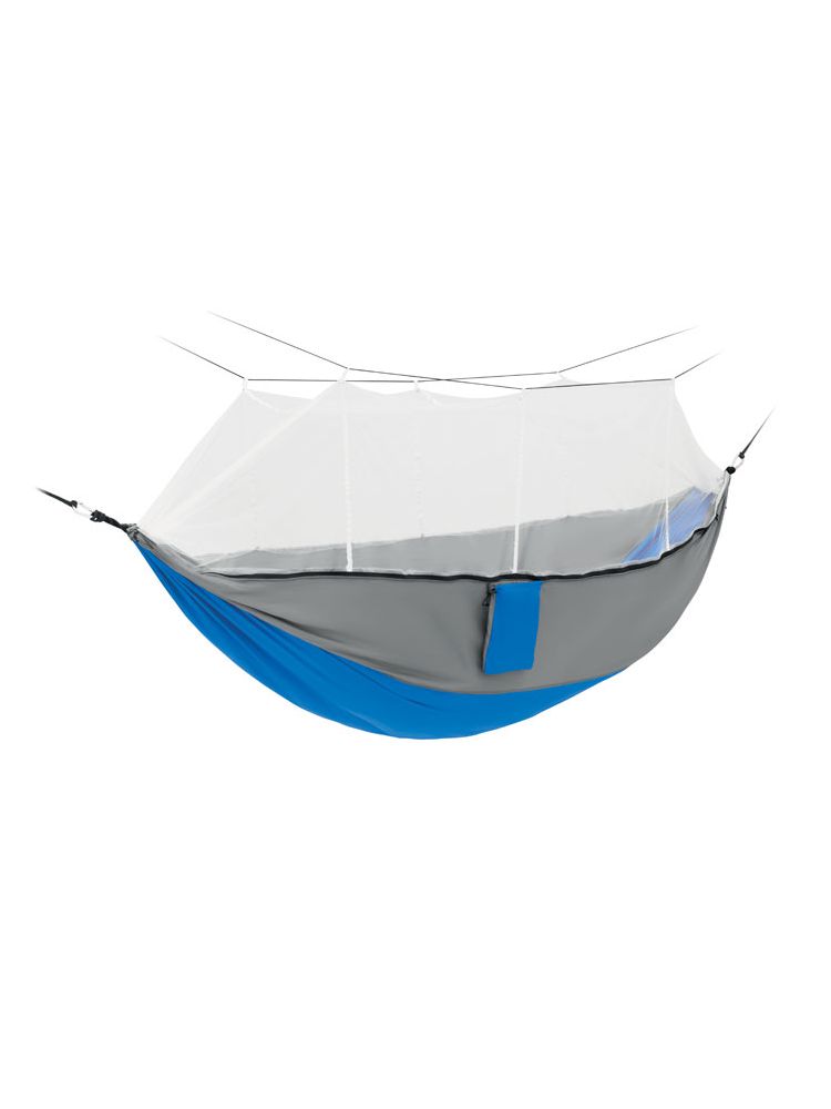 Hamak ze zintegrowaną moskitierą. Wykonany z lekkiego i wytrzymałego nylonu. Dla łatwego montażu pasek i karabińczyki są w komplecie. Obciążenie do 200 kg.
