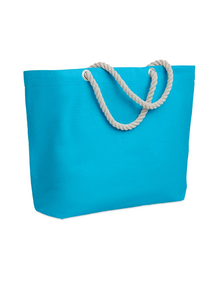 Torba plażowa lub torba na zakupy z bawełny z uchwytem ze sznurka. 220 gr/m².