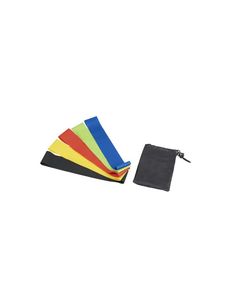 Zestaw 5 elastycznych, wytrzymałych taśm (60 × 5 cm) o różnej sile oporu. Każda jest na tyle rozciągliwa, by umożliwić ćwiczenie mięśni, przez co zwiększenie siły i kształtowanie sylwetki. Szerokie zastosowanie w wielu dyscyplinach sportowych, opartych na ćwiczeniach gimnastycznych. W zestawie z dekoracyjnym futerałem.