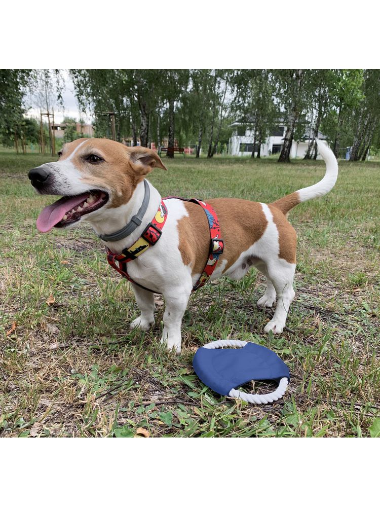 Frisbee dla psa RINGO to świetny gadżet dla posiadaczy czworonogów. Doskonały gdy chcemy aby pies zażył więcej ruchu. Usztywniona linka i materiałowy środek stanowią spójną całość.