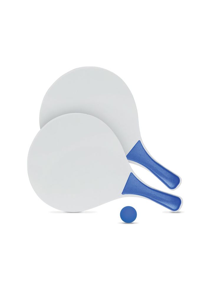 Plażowy komplet tenisowy: 2 rakietki z MDF i 1 miękka piłka.