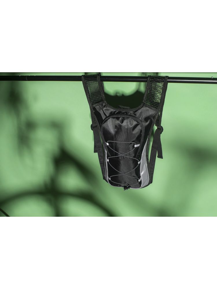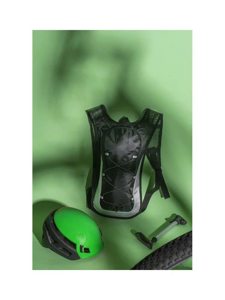 Plecak rowerowy RODE wykonany z wytrzymałego poliestru 420D posiada miejsce na bukłak, siateczkowe szelki z paskami odblaskowymi oraz gumkę ściągającą z przodu. Plecak ma usztywniony tył z elementami miękkiej siateczki dla podniesienia komfortu. Pojemność plecaka: około 3,2L.