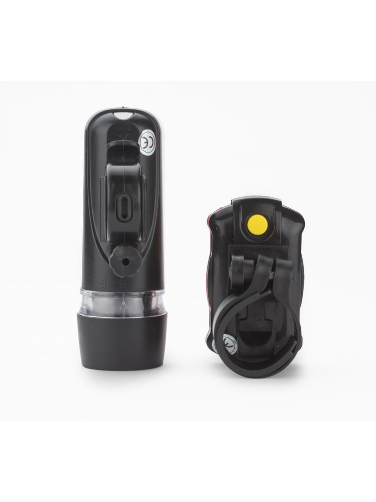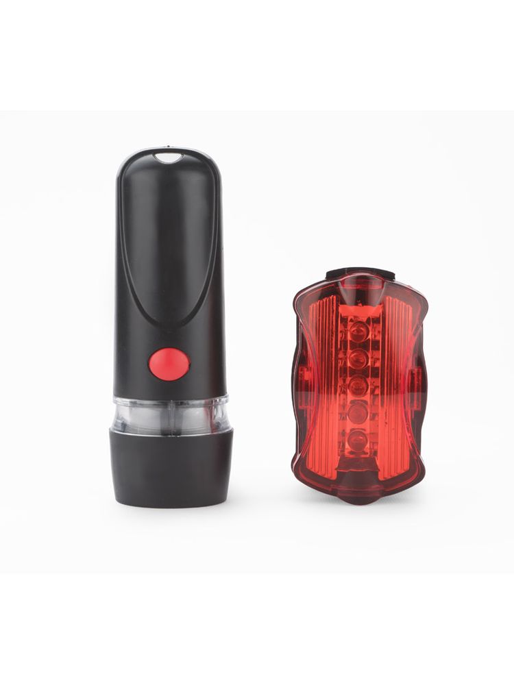 AZER to zestaw lampek rowerowych o ekonomicznym źródle światła LED. Mocne światło przednie i zapewniające widoczność z kilkuset metrów światło tylne sprawią, że bez obaw będziesz jeździć o każdej porze dnia i nocy. Charakteryzują się bardzo łatwym montażem. Lampka przednia posiada 5 białych diod LED i 3 tryby świecenia: jeden ciągły i dwa migające. Natomiast lampka tylna posiada 5 czerwonych diod LED i 7 trybów świecenia: jeden ciągły i 6 migających.