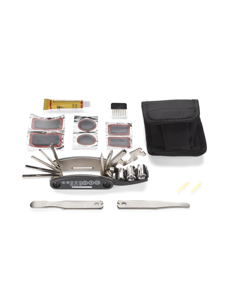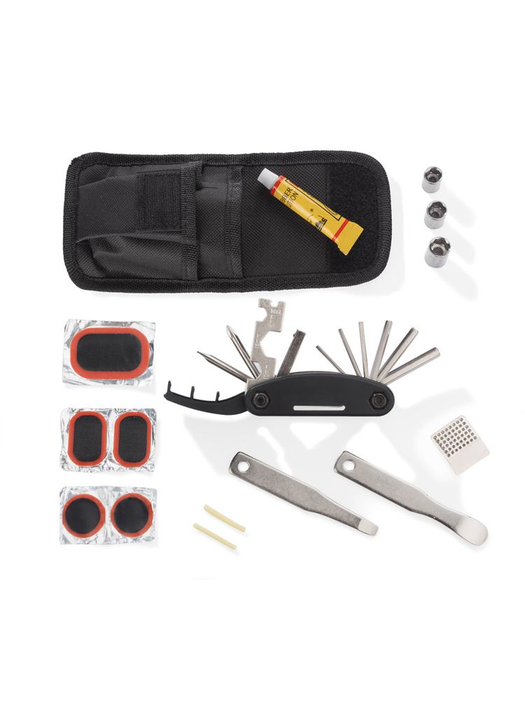 Niezbędnik każdego rowerzysty podczas zarówno krótkich, jak i dłuższych rajdów. Zestaw w swoim składzie zawiera komplet kluczy imbusowych, nasadki na śruby, śrubokręty, klucz uniwersalny, łyżki do opon oraz zestaw do łatania dętek. Całość zapakowana w poręczne etui. Nadruk logo zrobimy na etui.