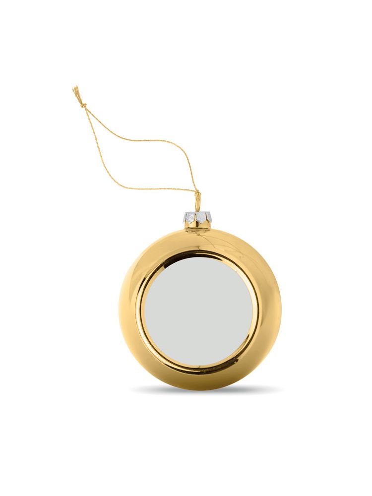 Świąteczna bombka z błyszczącego PP z płytką do druku sublimacyjnego. Średnica 6 cm.