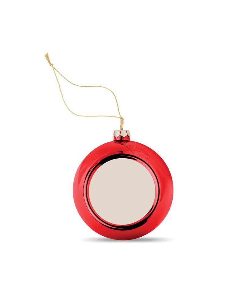 Świąteczna bombka z błyszczącego PP z płytką do druku sublimacyjnego. Średnica 6 cm.