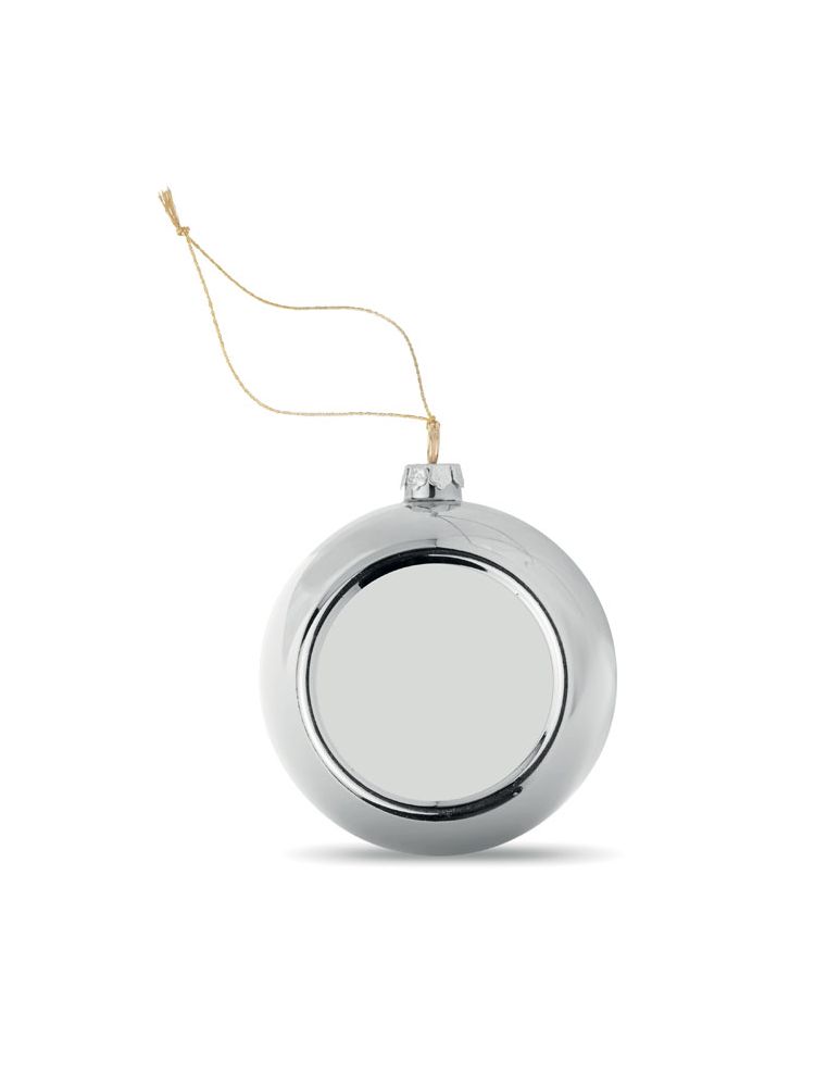 Świąteczna bombka z błyszczącego PP z płytką do druku sublimacyjnego. Średnica 6 cm.