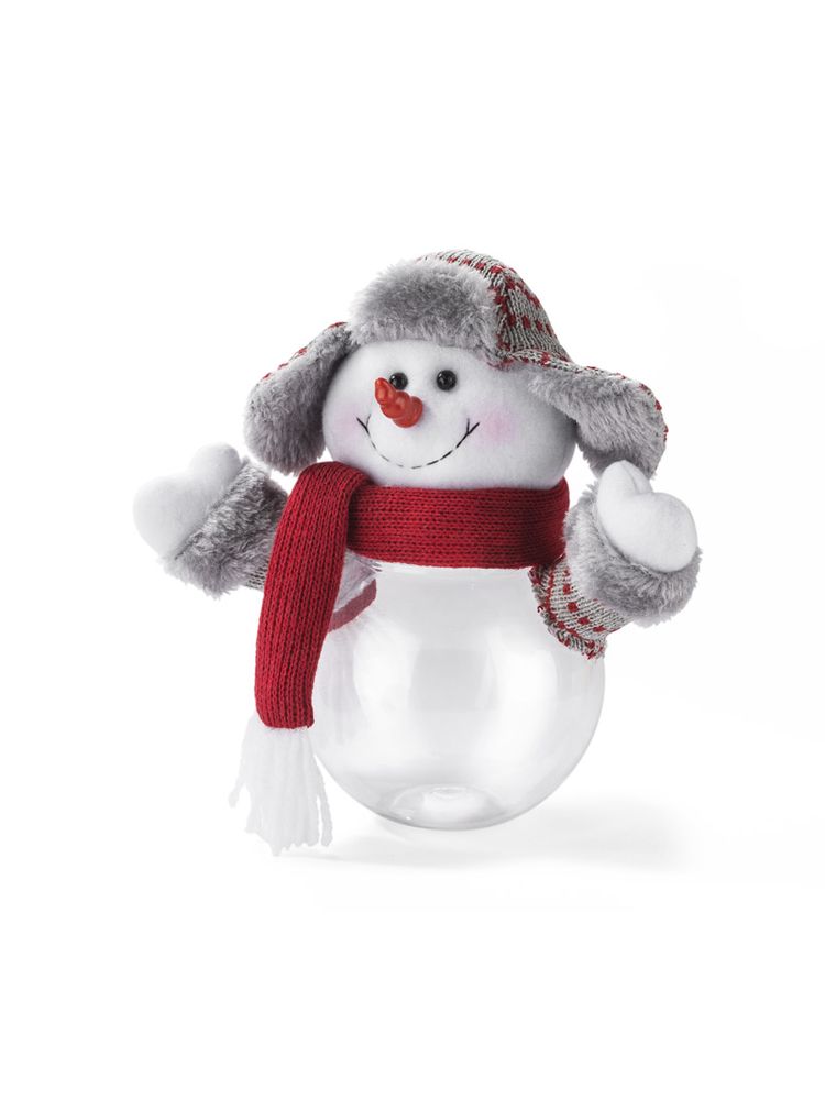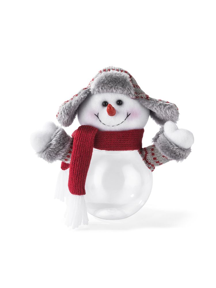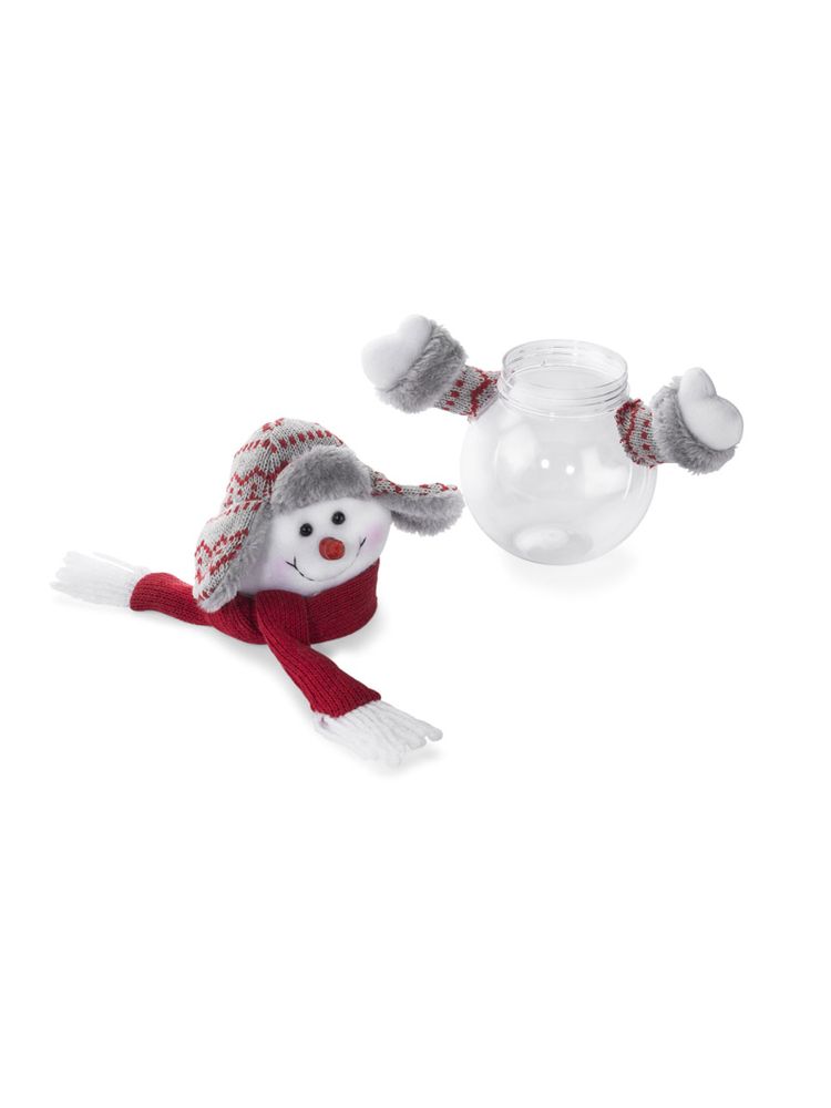 Pojemnik w kształcie bałwanka to idealny dodatek na świąteczny czas. Śliczny, świąteczny gadżet w którym można umieścić dekoracje oraz zapakowane słodkości. Pojemnik występuje w dwóch wersjach kolorystycznych. W całości wykonany jest z plastiku, a część z bałwankiem wykonana jest z tkaniny. Produkt nie jest przeznaczony do bezpośredniego kontaktu z żywnością.