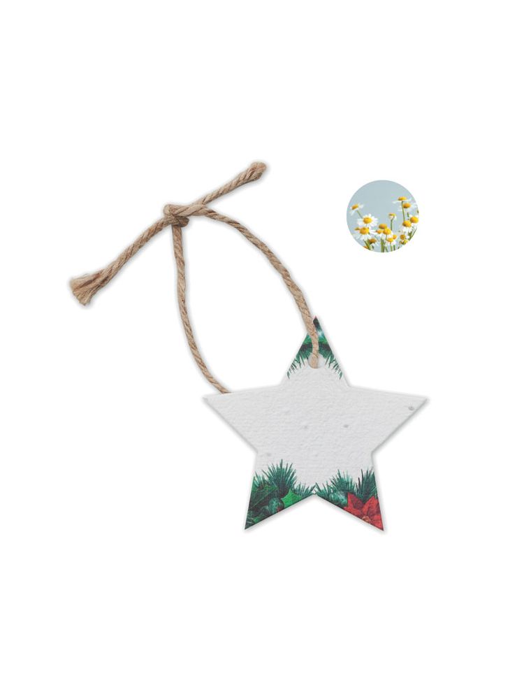Miękki papier z nasionami dzikich kwiatów w kształcie gwiazdy z jutowym sznurkiem. Po wykorzystaniu posadź osłonę i obserwuj, jak rośnie na niej łąka dzikich kwiatów. Wyprodukowano w UE.