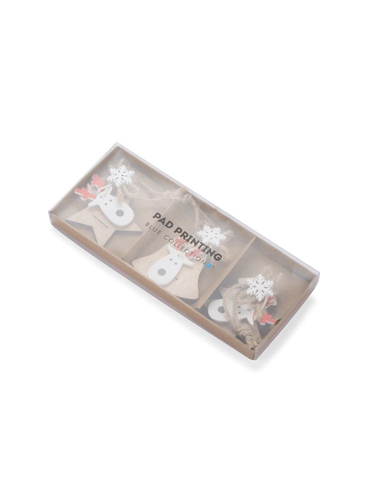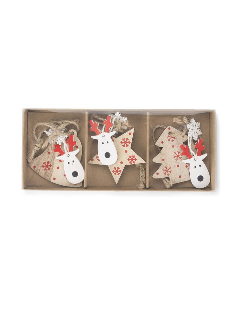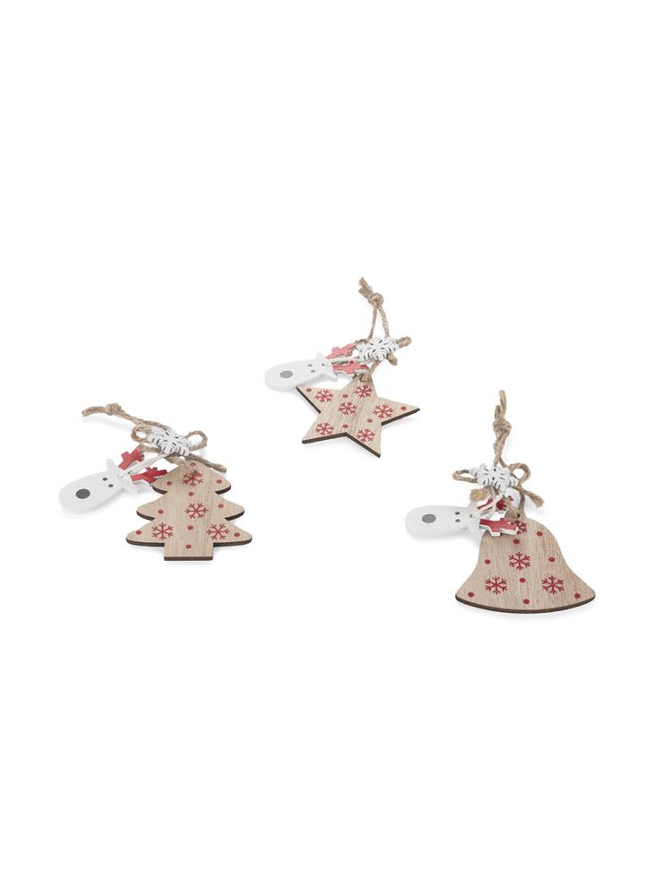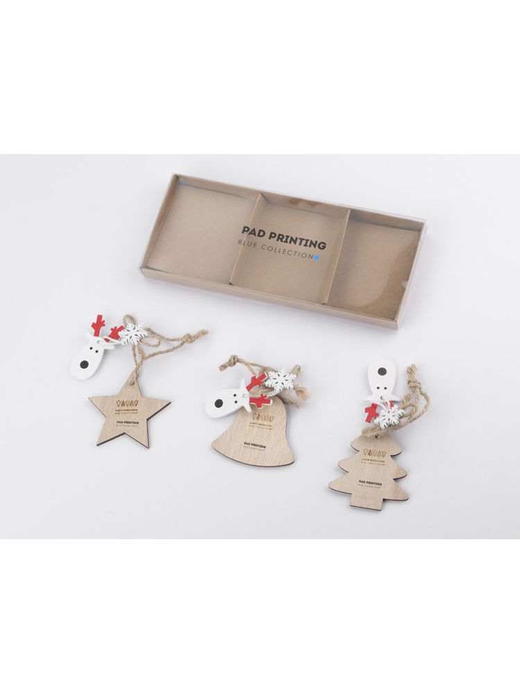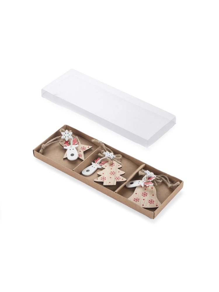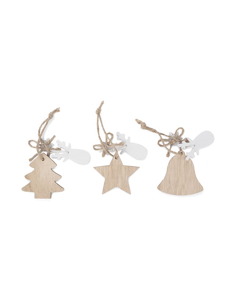 Zestaw FERI składa się z 3 sztuk drewnianych zawieszek o różnych wzorach: gwiazdka, choinka, dzwoneczek. Drewniane zawieszki idealnie wpisują się w trend ekologiczny pasując niemal do każdego wnętrza.