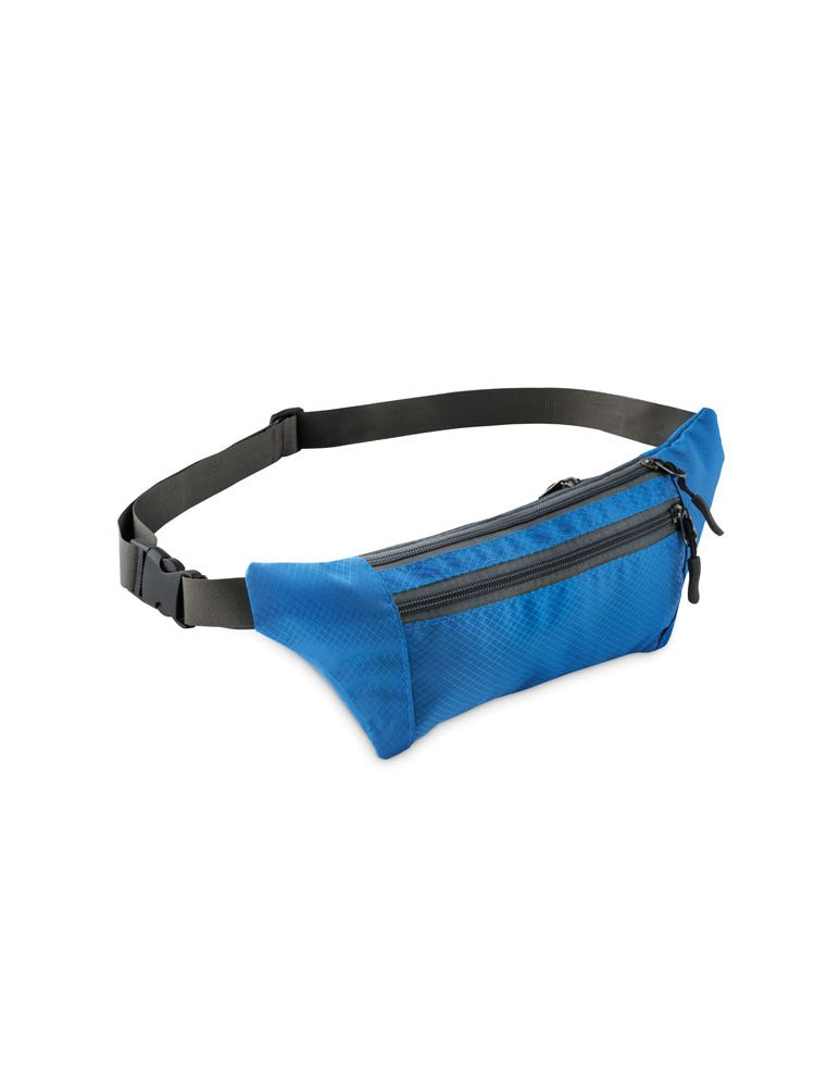 Saszetka na biodro z żakardowego poliestru z 2 zapinanymi na zamek przednimi przegrodami, 1 zapinaną na zamek kieszenią z tyłu i regulowanym paskiem w talii.