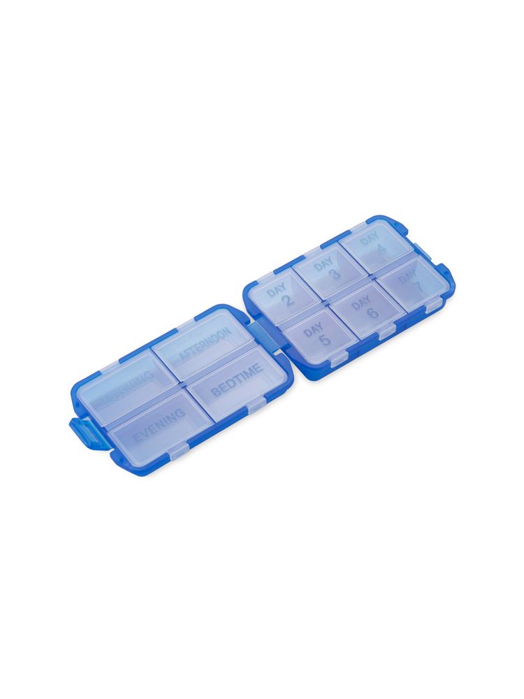 Pojemnik na tabletki TABWE to praktyczne i funkcjonalne pudełko do przechowywania i organizacji leków. Jest to szczególnie przydatne dla osób które regularnie zażywają leki i chcą mieć je zawsze pod ręką w poręcznym opakowaniu. Posiada 4 przegrody podzielone na poranne, popołudniowe, wieczorne i nocne dawki leków oraz 7 przegródek na każdy dzień tygodnia. Pojemnik wykonany jest z tworzywa.