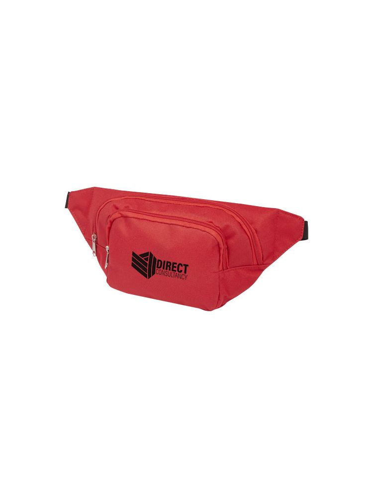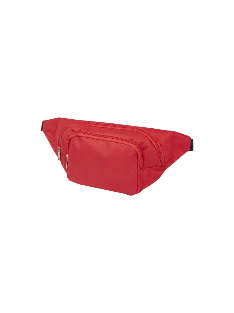 Dwie duże przegrody zapinane na zamek. Regulowany pasek na biodra ze sprzączką.
