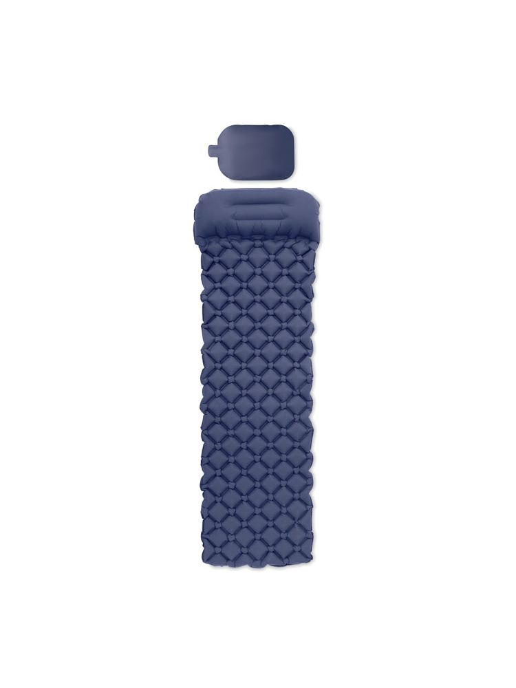 Ultra lekki dmuchany materac do spania z wbudowaną poduszką, 40D hydrofobowy nylon. Zapakowany w pokrowiec. W komplecie z poduszką powietrzną do nadmuchiwania materaca.