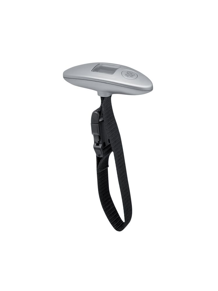 Waga do bagażu w obudowie ABS. Max ciężar 40 kg. Urządzenie podaje wagę w kg lub funtach. Zasilana 1 bateria pastylkową (dołączona). Indywidualnie pakowana w srebrne kartonowe pudełko.