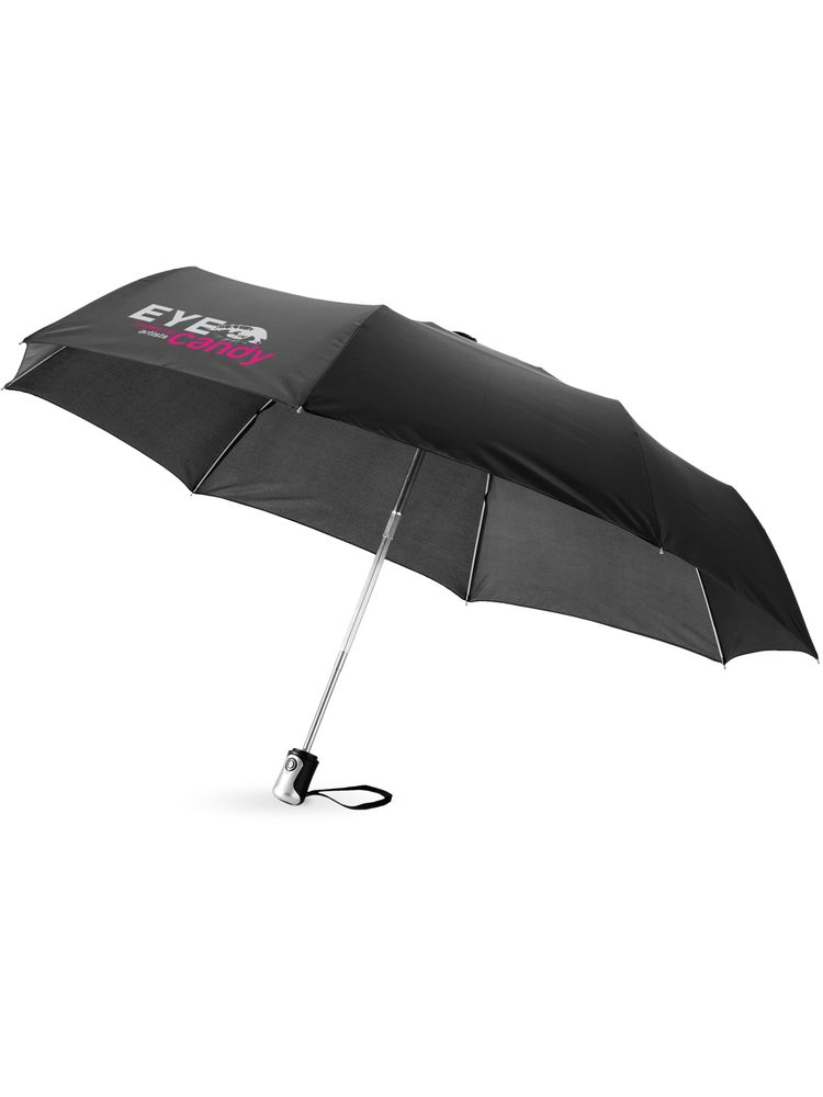 Alex 21,5” to praktyczna parasolka z wszystkimi nowoczesnymi udogodnieniami. Dzięki automatycznemu systemowi, parasol można szybko otworzyć i zamknąć. Wystarczy jedno kliknięcie, aby deszcz przestał Ci przeszkadzać. Poręczny parasol posiada poliestrowe płótno, metalowy stelaż i żebra oraz plastikową rączkę, która wygodnie leży w każdej dłoni. Dzięki swoim rozmiarom po złożeniu idealnie zmieści się w torbie (podręcznej). Dodatkowo oferuje wiele możliwości umieszczenia logo lub innych wiadomości i jest dostępny w różnych kolorach.