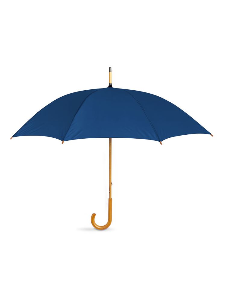 Parasol z drewnianą rączką, ręcznie otwierany i zamykany. Drewniany trzon, kocówki oraz szpic. Czarne, lakierowane żebra, drewniane wykończenia. Rozmiar: 23 cale Materiał: poliester 190T.