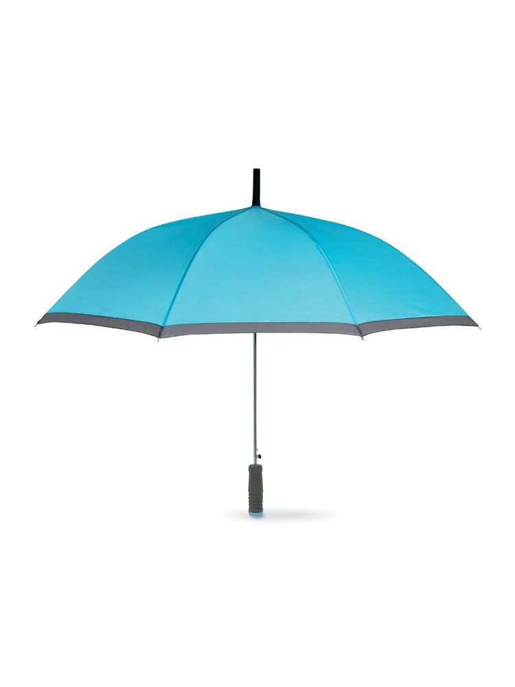 Automatycznie otwierany parasol 23 cale. Polyester 190T, trzon, żebra i końcówki ocynkowane. Czarny, gumowany szpic. Panele wykończone szarą lamówką.Prosta rączka z materiału EVA z wykończeniem w kolorze poszycia. Dobrane kolorystycznie etui.