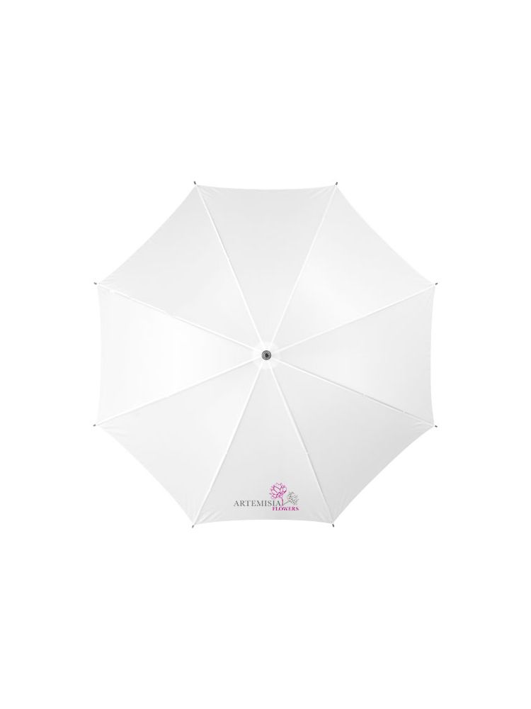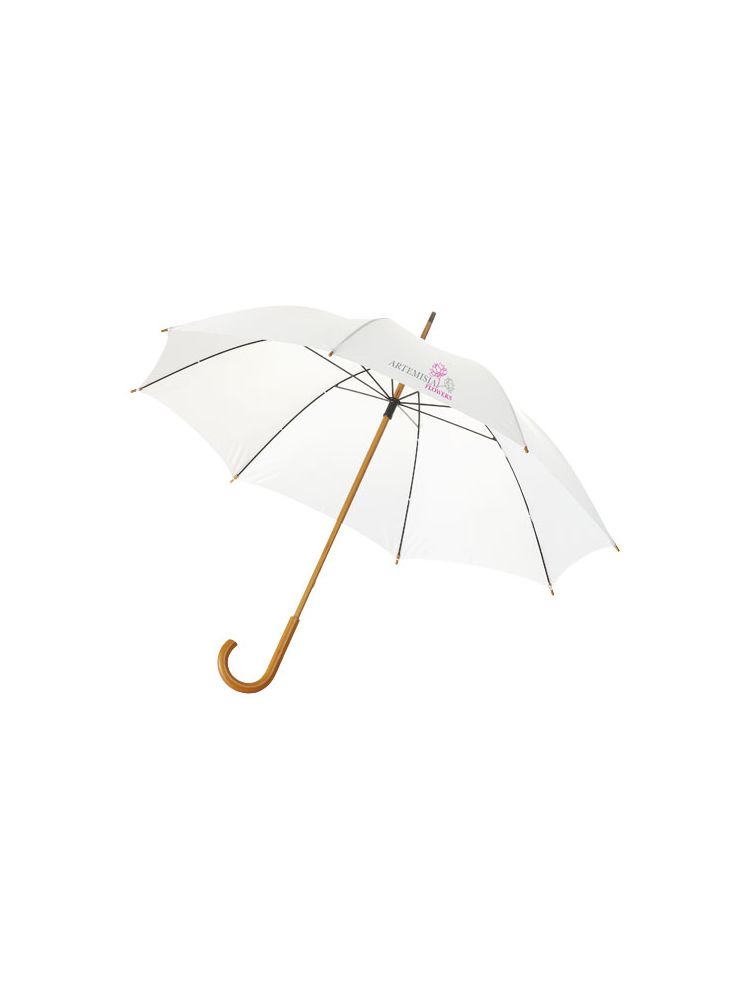 Parasol 23’‘ z drewnianą rączką i trzpieniem. Metalowy stelaż.