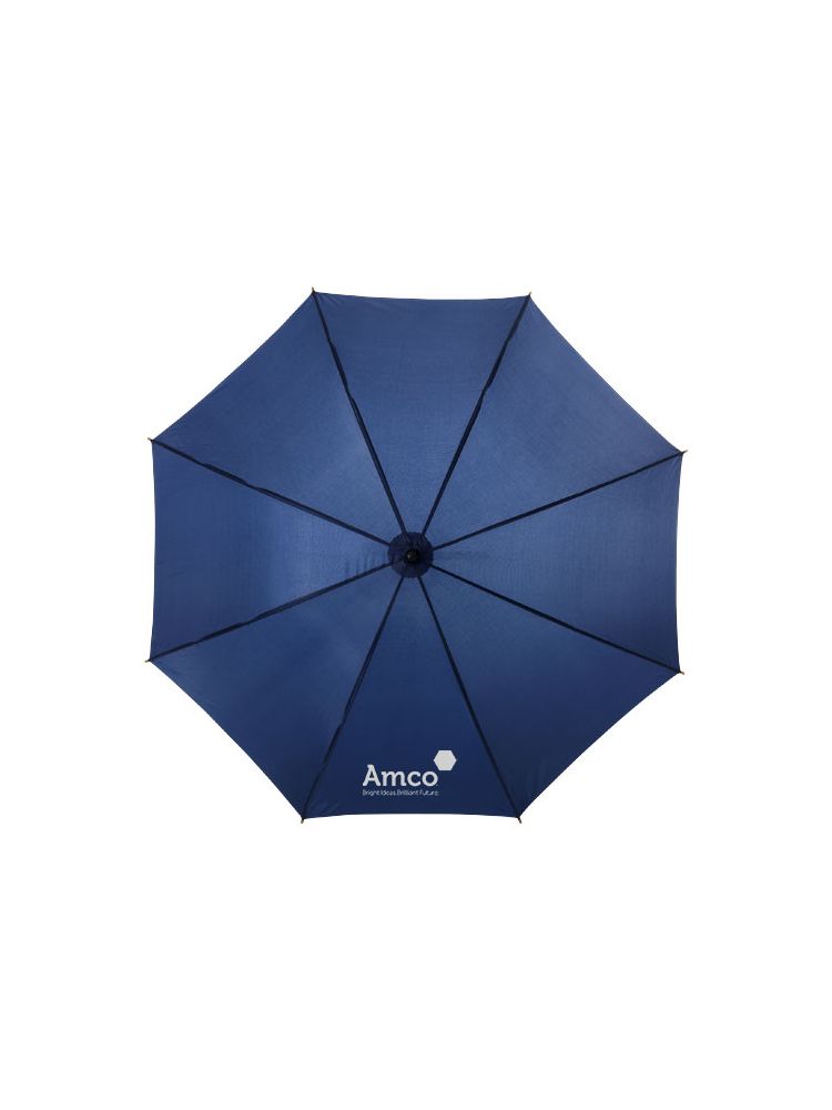 Parasol 23’‘ z drewnianą rączką i trzpieniem. Metalowy stelaż.