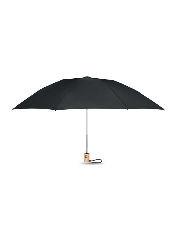 23-calowy, 3-krotnie składany, automatycznie otwierany i zamykany parasol z 190T pongee RPET. Żebra z włókna szklanego. Bambusowa rączka z bawełnianym paskiem na nadgarstek. W komplecie pasujący pokrowiec RPET. Bambus jest produktem naturalnym, dlatego mogą wystąpić nieznaczne różnice w kolorze, wzorze i rozmiarze.