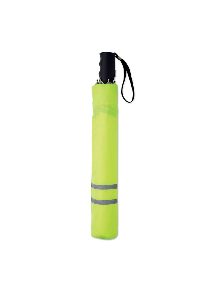 Parasol o średnicy 21 cali. Składany na 2, otwierany automatycznie. Wykonany z poliestru pongee, plastikowa rączka ze smyczką. Trzon, żebra i koncówki ocynkowane. W etui z tego samego materiału z elementami odblaskowymi. Zamykany manualnie.