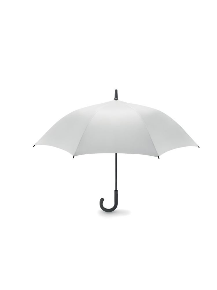 Elegancki 23 calowy parasol automatyczny odporny na działanie silnego wiatru wykonany z tkaniny 190T. Trzon czerniony, żebra wykonane z włókna szklanego, zakończenia plastikowe. Zakrzywiona rączka z gumowanego plastiku. Zapięcie manualne.