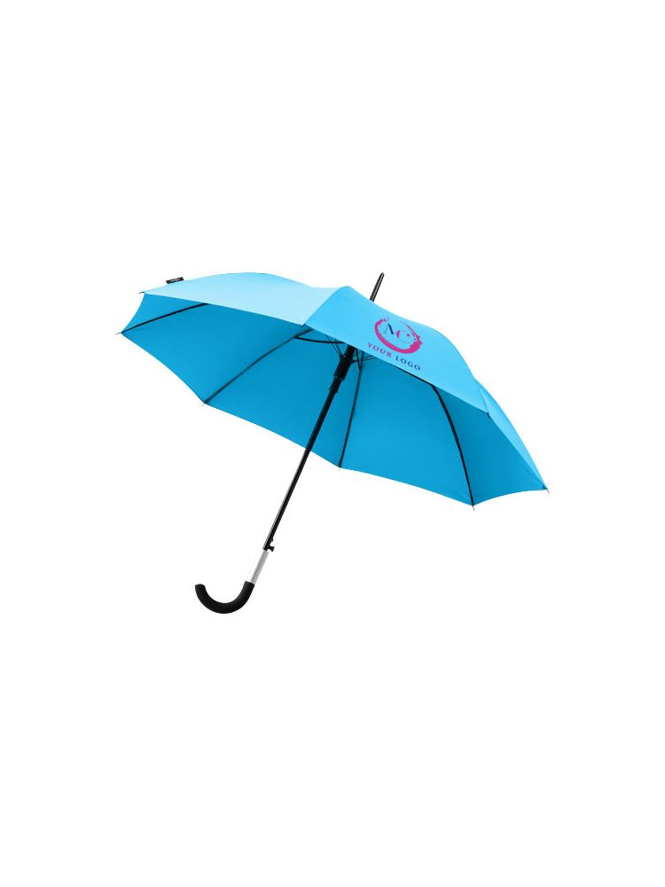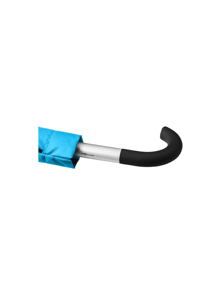 Objęty wzorem zastrzeżonym parasol z funkcją automatycznego otwierania. Metalowy trzpień i szkielet. Uchwyt pokryty gumą z aluminiowym detalem, specjalnie zaprojektowana rączka, którą łatwo powiesić na stole. W zestawie pokrowiec tego samego koloru.