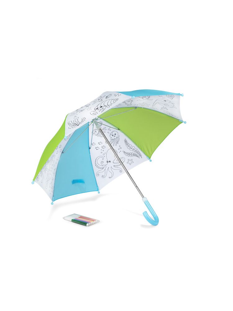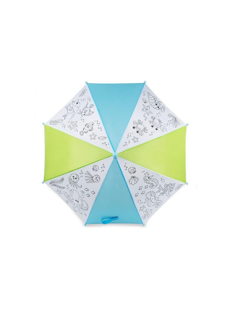 KIDDI to parasol dla dzieci, który został ozdobiony morskimi wzorami zaprojektowanymi przez grafików Blue Collection. W zestawie sześć wodoodpornych pisaków do samodzielnego pokolorowania parasola. Parasol manualny, wykonany z poliestru.