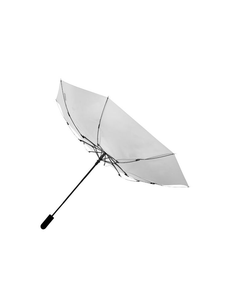 Objęty wzorem zastrzeżonym 3-sekcyjny parasol z automatycznym otwieraniem. Czarny metalowy trzpień, szkielet z włókna szklanego oraz plastikowy uchwyt pokryty gumą. W zestawie stylowy pokrowiec. Rozłożony mierzy 31 cm szerokości.