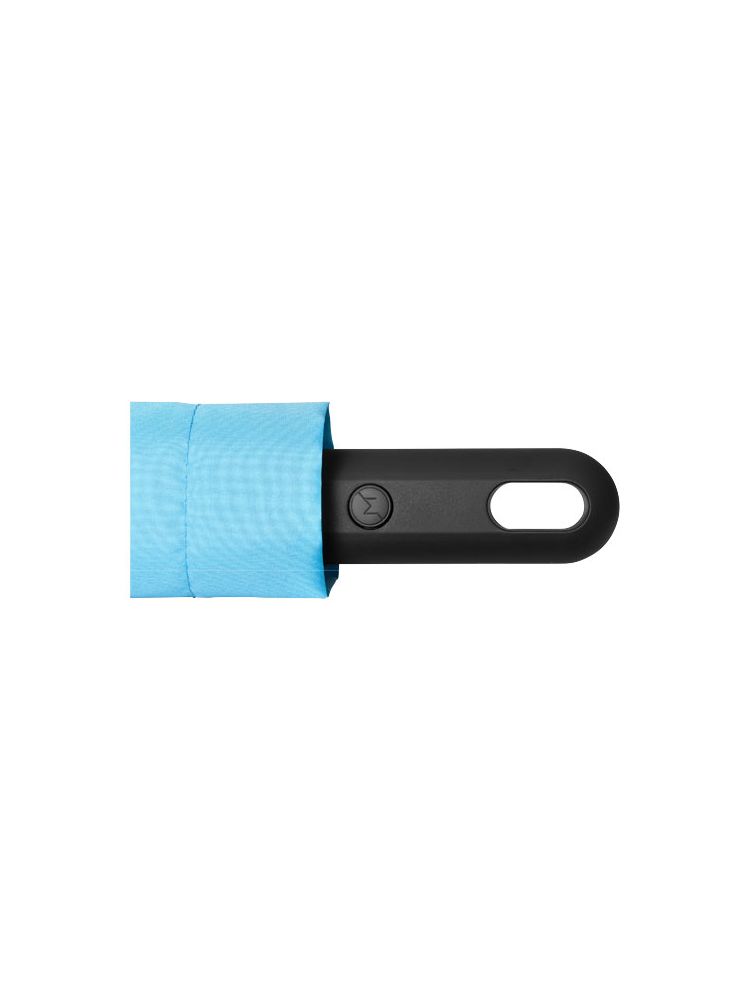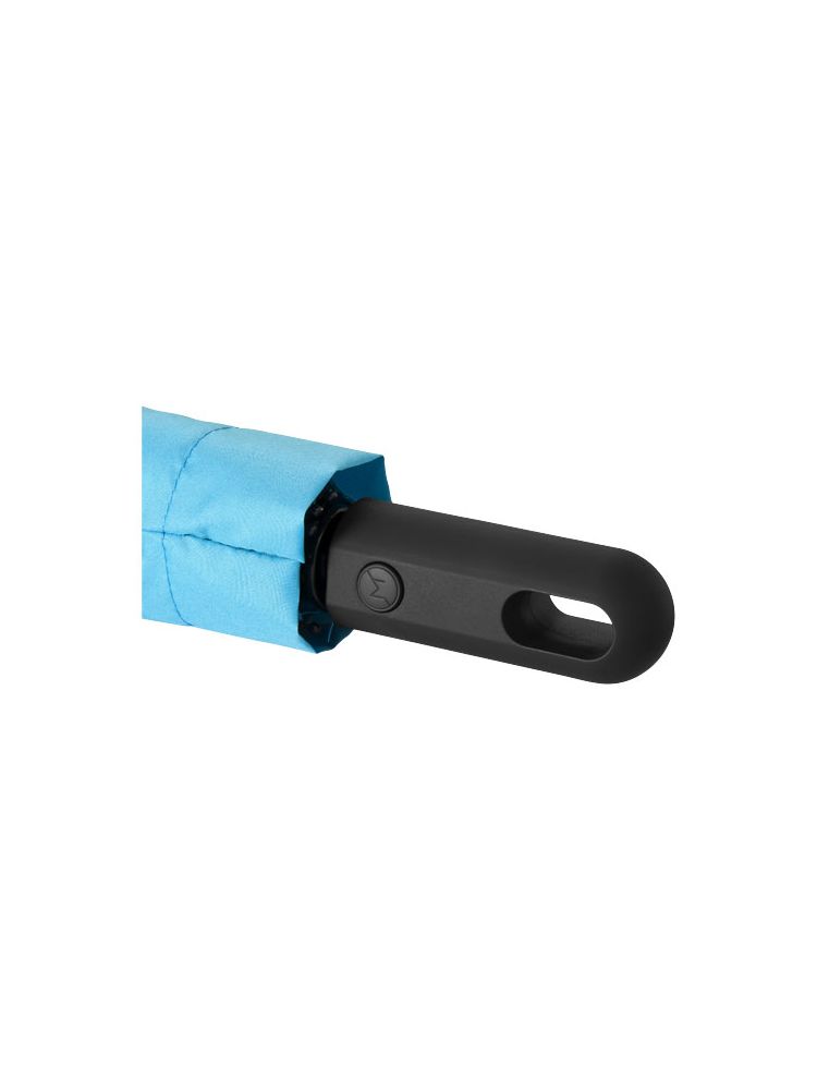 Objęty wzorem zastrzeżonym 3-sekcyjny parasol z automatycznym otwieraniem. Czarny metalowy trzpień, szkielet z włókna szklanego oraz plastikowy uchwyt pokryty gumą. W zestawie stylowy pokrowiec. Rozłożony mierzy 31 cm szerokości.