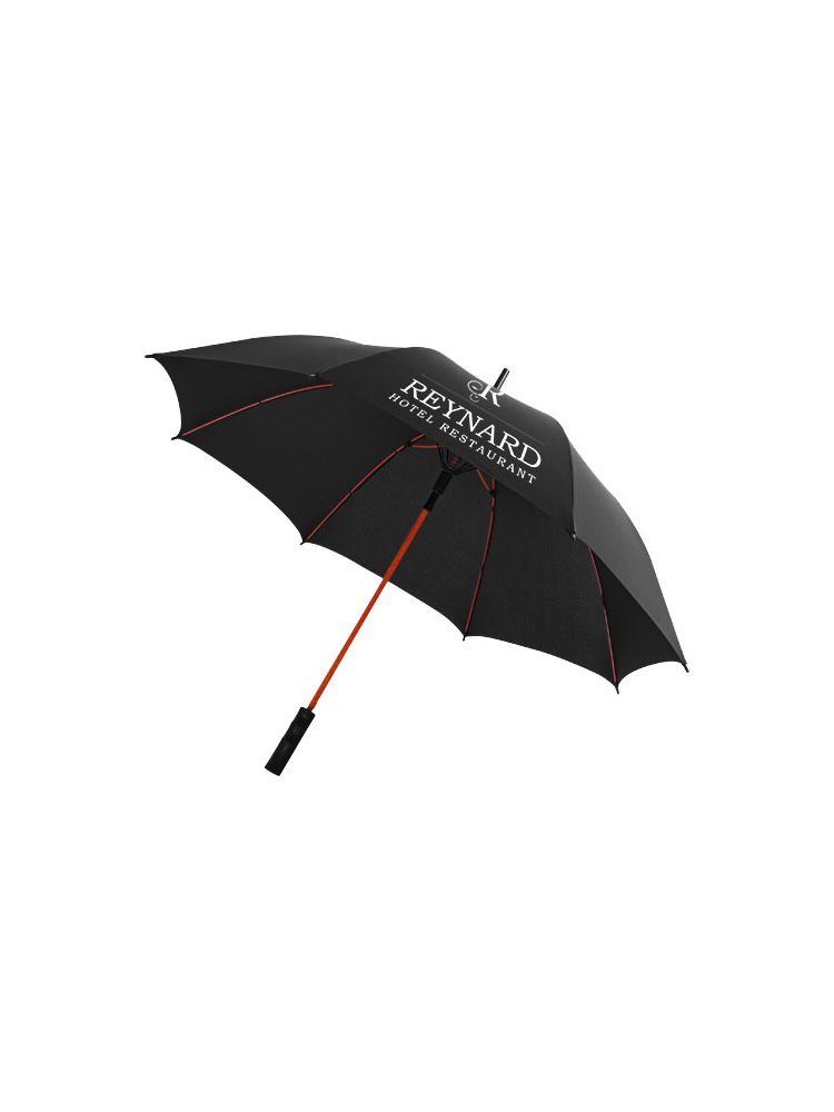 Automatyczny parasol 23’‘. Czasza wykonana z poliestru, do tego pokrowiec w kolorze korespondującym z barwą czaszy. Kolorowa rączka oraz żebra wykonane z włókna szklanego. Na pasku szew w tym samym kolorze. Ekskluzywny i praktyczny.