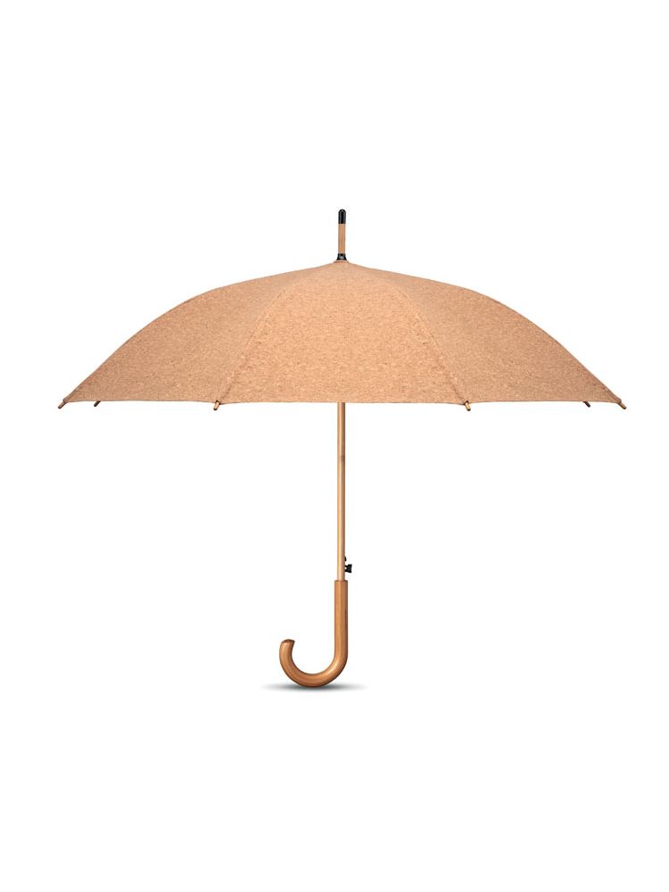 25-calowy automatycznie otwierany parasol korkowy z bambusowym trzonem i drewnianą rączką Ply, żebra z włókna szklanego. Czarne plastikowe końcówki i góra. Ręczne zamknięcie. Korek jest materiałem w 100% naturalnym. Ze względu na jego strukturę i porowatość powierzchni ostateczny wygląd nadruku na każdym artykule może się różnić.