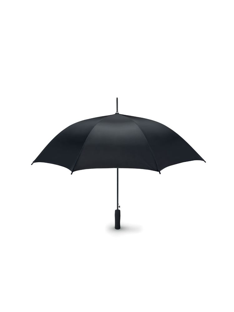 Parasol automatyczny 23 cale wykonany z pongee 190T, z czernionym metalowym trzonem i ożebrowaniem, czarne plastikowe zakończenia. Rączka wykonana z pianki EVA, zapięcie manualne.