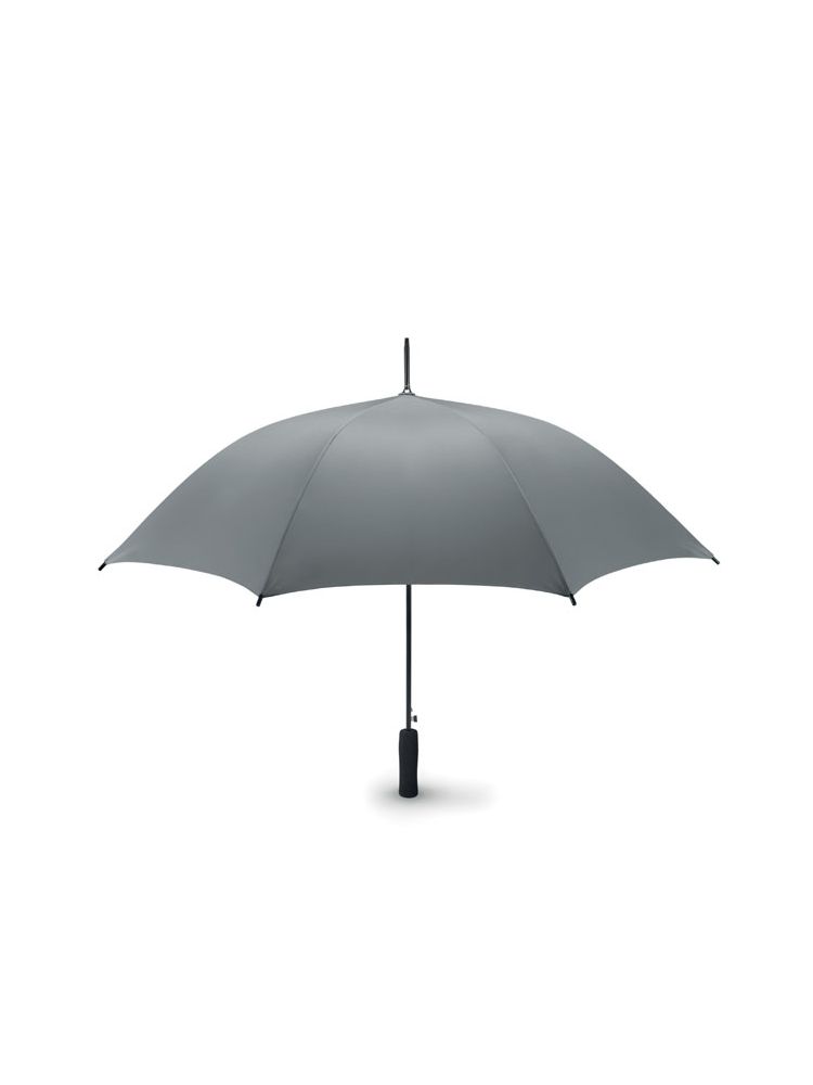 Parasol automatyczny 23 cale wykonany z pongee 190T, z czernionym metalowym trzonem i ożebrowaniem, czarne plastikowe zakończenia. Rączka wykonana z pianki EVA, zapięcie manualne.