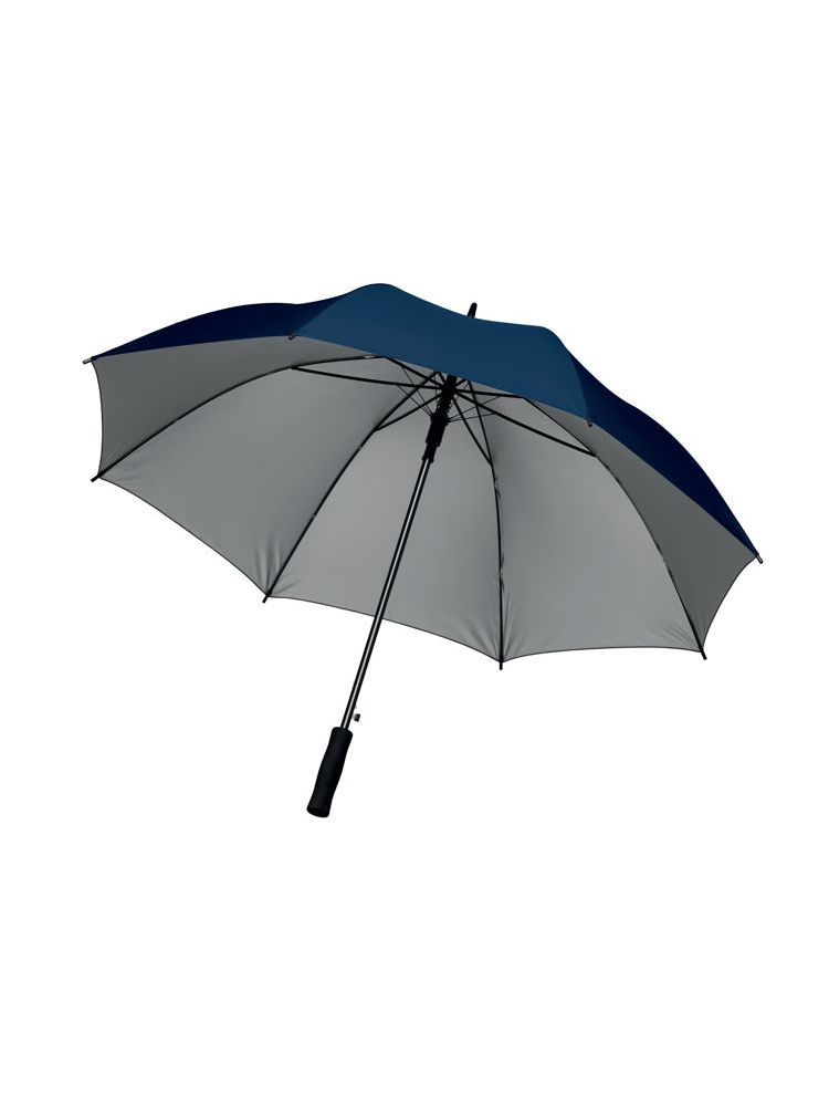 Automatycznie otwierany parasol 27’‘ z poliestru 190T oraz wewnętrzną srebrną warstwą. Czarny metalowy trzon i żebra. Plastikowe końcówki. Prosta rączka z EVA. Manualne zamykanie.