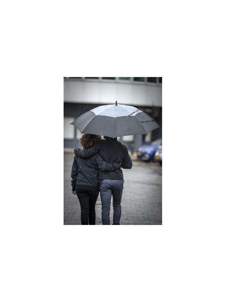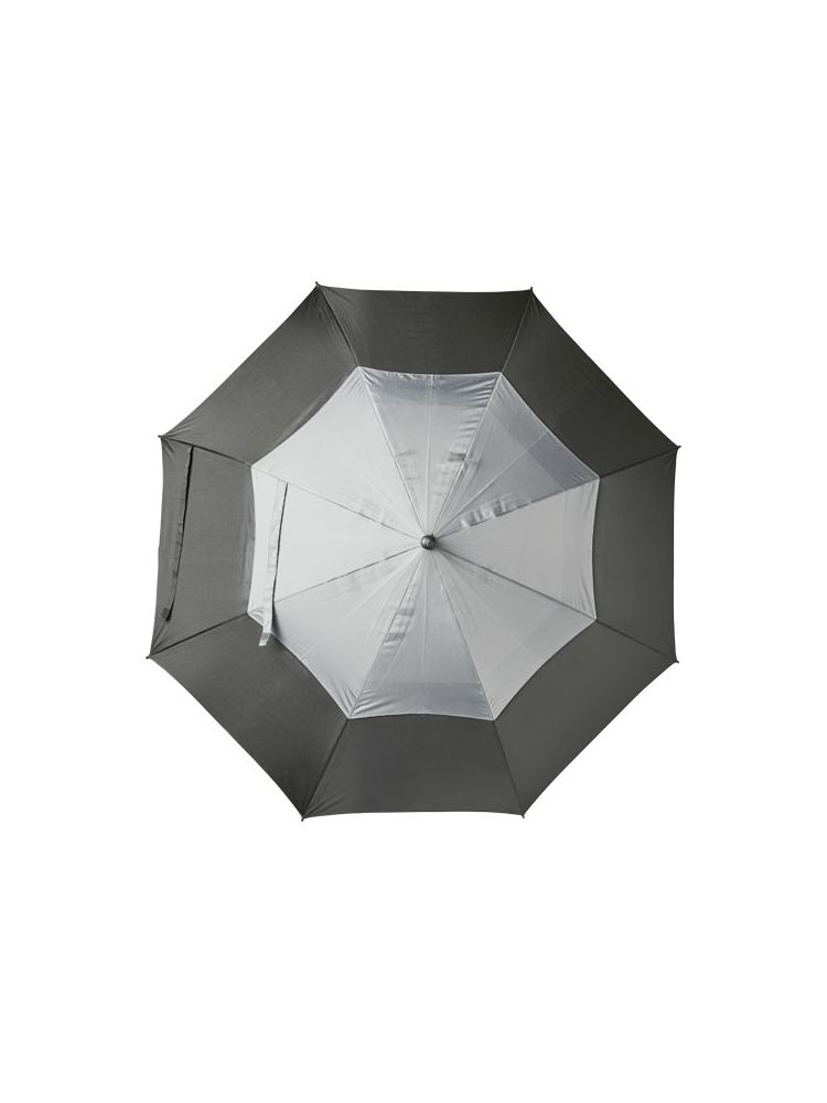 Parasol golfowy otwierany automatycznie z czaszą z poliestru pongee pozwala na ochronę dwóch osób przed deszczem. Wysokiej jakości metalowy trzpień, szkielet z włókna szklanego i otwory w czaszy pozwalają na sprostanie silnym wiatrom. Daszek nad otworami wentylacyjnymi wykonany z poliestru pongee w kontrastującym kolorze. Na dolnej części gumowanej rączki logo :Luxe” naniesione za pomocą nalepek wypukłych. Przycisk do otwierania z wykończeniem w kolorze szarym metalicznym. Dwa paski do zamykania w kolorze pasującym do reszty parasola pozwalają na dokładne jego zamknięcie. W zestawie pasujące etui. Doskonały, luksusowy upominek.