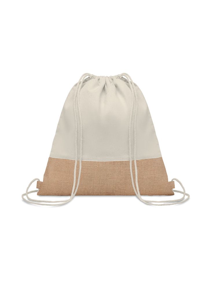 Bawełniany worek ze sznurkiem ze wstawkami z juty. Długie rączki. 160 g / m².