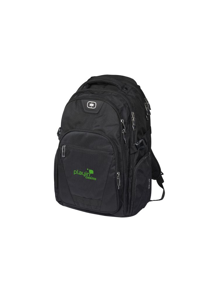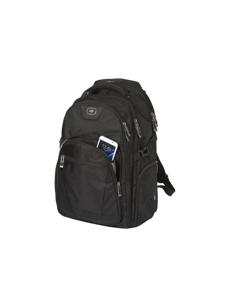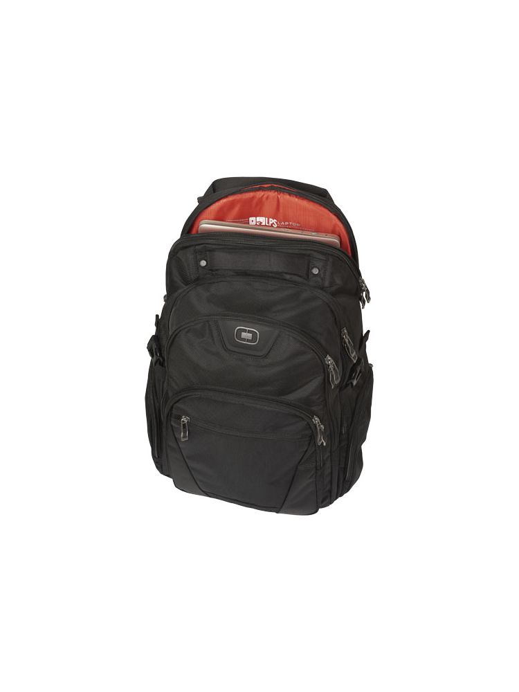 Objęty wzorem zastrzeżonym plecak z wyściełaną przegrodą na laptop 17”, kieszenią na tablet, przednią kieszenią z przegródkami na akcesoria, panelem organizerem deluxe oraz 2 bocznymi kieszeniami.