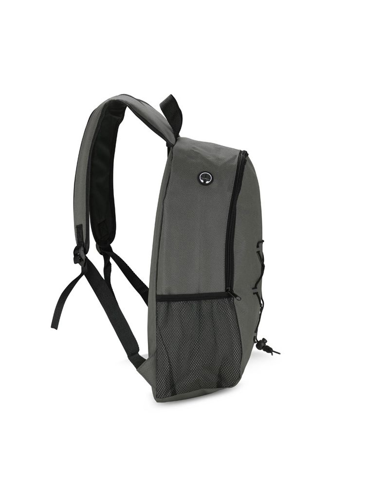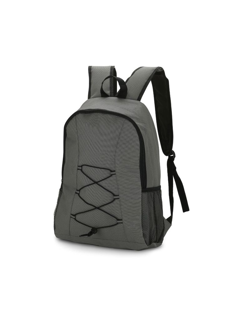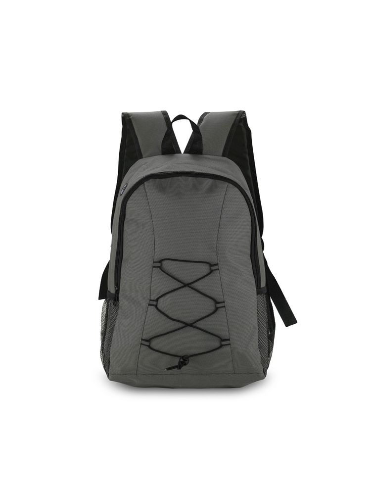 Plecak KAPIRO wykonany z poliestru 600D. Posiada jedną komorę główną zamykaną na zamek oraz dwie siateczkowe kieszonki boczne. Czarne gumki pełnią praktyczny element podróży – można wykorzystać to miejsce do zapakowania małego kocyka lub lekkiej kurtki. Komora główna plecaka posiada wyjście na słuchawki.