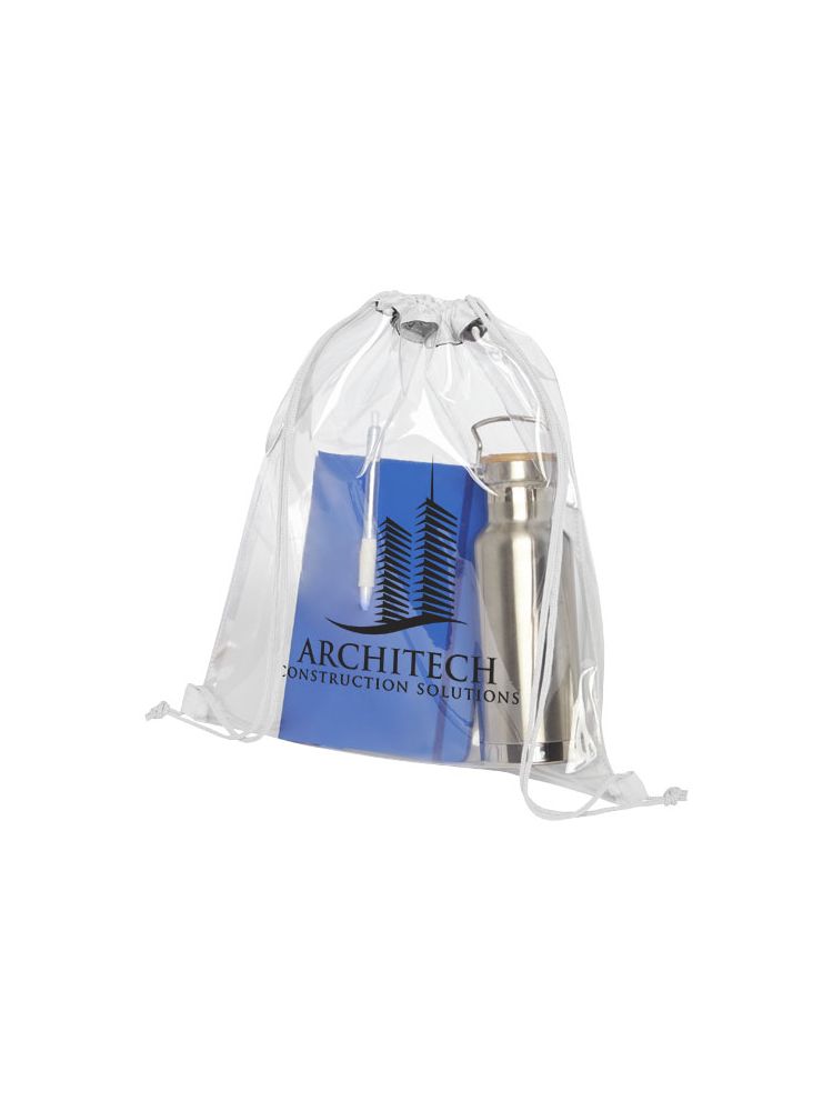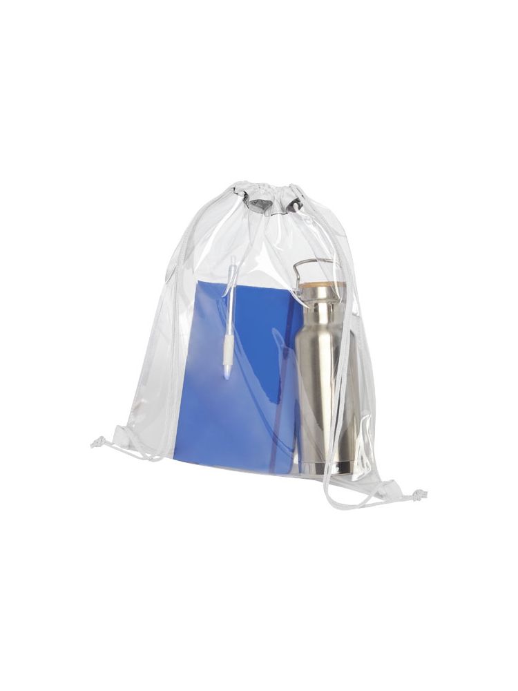 Transparentny plecak idealny dla fanów sportu, gdy chcą spakować się na stadion. Świetna także w szkole i pracy, która wymaga przechodzenia przez kontrolę bezpieczeństwa. Główna przegroda zamykana ściąganym sznurkiem. Nie zawiera akcesoriów.
