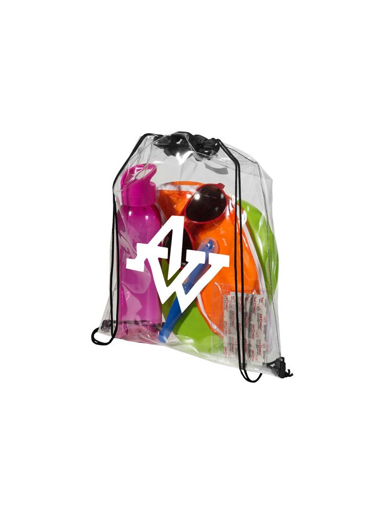 Transparentny plecak idealny dla fanów sportu, gdy chcą spakować się na stadion. Świetna także w szkole i pracy, która wymaga przechodzenia przez kontrolę bezpieczeństwa. Główna przegroda zamykana ściąganym sznurkiem. Nie zawiera akcesoriów.