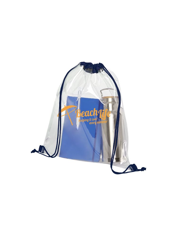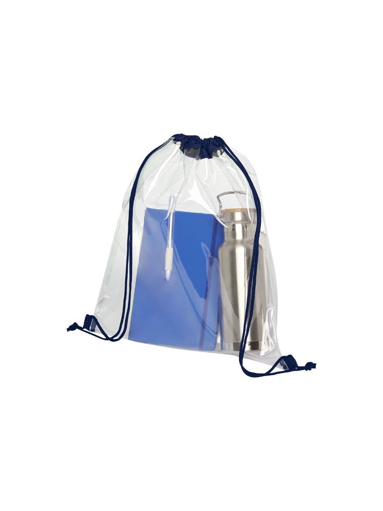 Transparentny plecak idealny dla fanów sportu, gdy chcą spakować się na stadion. Świetna także w szkole i pracy, która wymaga przechodzenia przez kontrolę bezpieczeństwa. Główna przegroda zamykana ściąganym sznurkiem. Nie zawiera akcesoriów.